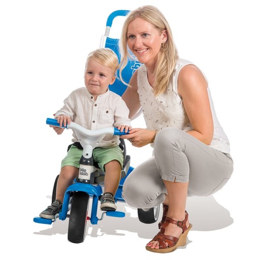 Велосипед має широку ручку, яку можна регулювати та від'єднувати від автомобіля. На ручці є сумка для дрібниць.