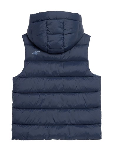 Стьоганий пуховий жилет з капюшоном для хлопчика. Ми наповнили його синтетичним пухом, який разом із використаною технологією 4Warm забезпечить вашій дитині тепловий комфорт у холодні дні.