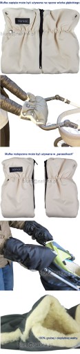 Забезпечує комфорт для опікуна навіть у дуже холодні дні. Ідеально підходить для тих, хто любить тривалі прогулянки з дітьми на свіжому повітрі. Натуральний вовняний наповнювач гарантує чудовий тепловий комфорт. Практичний, теплий і універсальний.
