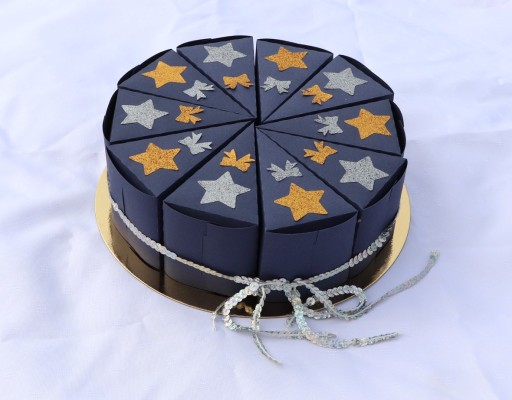 Готові як на картинці - декоровані і склеєні, перев'язані стрічкою з паєтками.