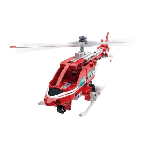 Діти можуть використовувати понад 160 деталей, щоб побудувати дивовижний рятувальний гелікоптер і судно на повітряній подушці з механізмами, які справді працюють.