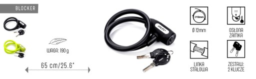 Міцний велозамок у вигляді сталевого троса діаметром 4,5 мм, покритого пластиком.