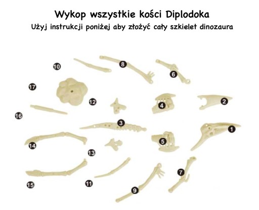 Зберіть скелети всіх динозаврів: тиранозавра, стегозавра, мамонта, диплодока, трицератопса, пілозавра, велоцираптора, смілодона, крокодила (дейнозуха).