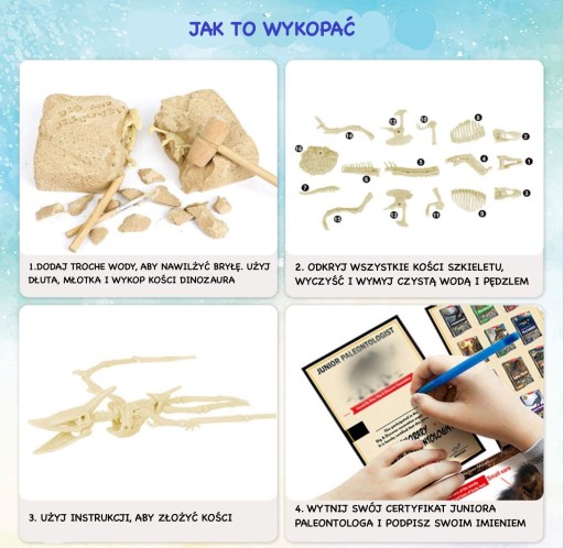 Набір для модного вченого. У блоці захований скелет динозавра, який потрібно викопати за допомогою інструментів, що входять в набір, а потім з'єднати кістки, щоб отримати скелет ПТЕРОЗАВРА.