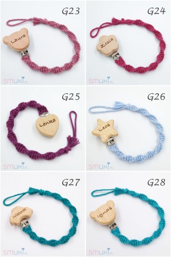 - металева застібка (зубці закріплені пластиковими кришками, завдяки чому не пошкодить одяг) з дерев'яним декоративним елементом (Ведмедик, Зірка, Сердечко, Квітка, Машина)