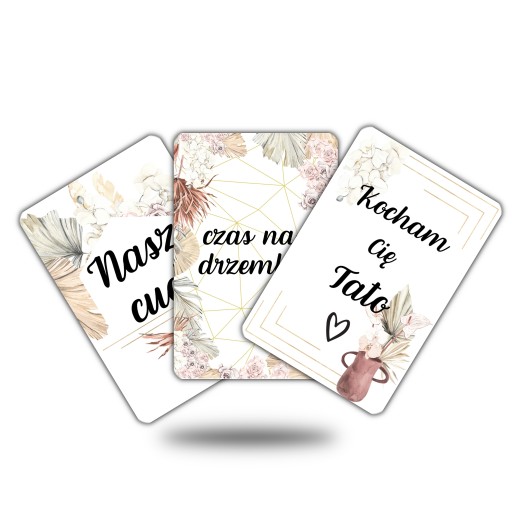 Крім того, картки мають заокруглені кути, тому їх можна давати в ручку дитини, не боячись, що їх уколять. Листівки виготовлені на папері вагою 350 г, що робить їх досить жорсткими. Упакований у стильну обкладинку та пакет із фольги та доставлений у смачній картонній коробці.