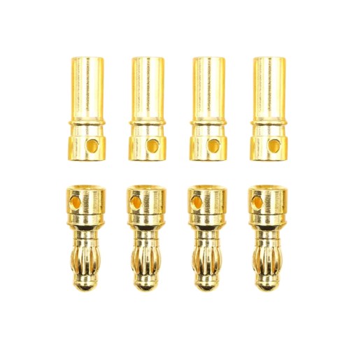Ці предмети є професійними та практичними штекерами типу «банан» у формі кулі, які в основному виготовлені з міцного позолоченого мідного матеріалу та можуть використовуватися для підключення батареї RC до електроніки та підключення безщіткового двигуна до електронного керування. >