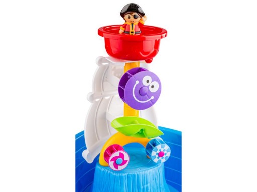 Весь набір - стіл, який виконує роль пісочниці - виглядає як піратський корабель. Він був оснащений пусковою установкою для гармат, пальмою, яка одночасно є гіркою для м'яча, і човнами. Спереду човен оснащений величезними вітрилами, за якими знаходиться піщаний або водяний млин. Одна іграшка приховує в собі безліч цікавих можливостей.