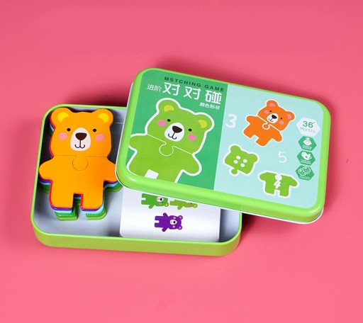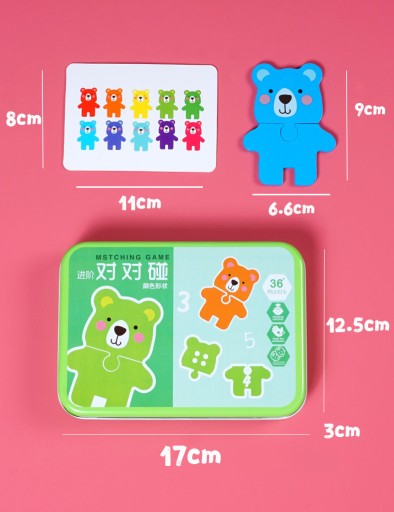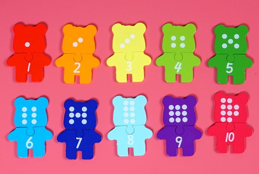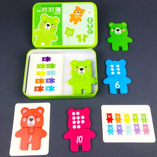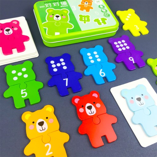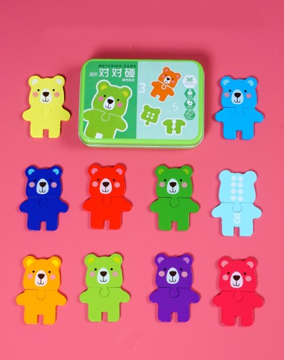 Гра включає в себе зіставлення голови барвистого плюшевого ведмедика з відповідною кількістю крапок до відповідного тіла, кожна з яких відповідає різному числу.