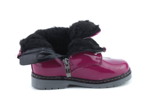 Дитячі чобітки KORNECKI з екологічної шкіри.Внутрішня частина та устілка утеплена овчиною.Взуття має застібку на липучці.Підошва товста нековзна.Близько 12см ширина верху вгорі близько 10 см.