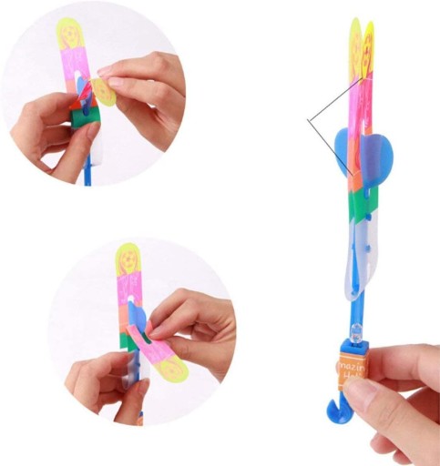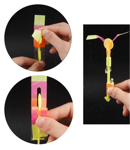 Світлодіодна вертушка (вертоліт) з пусковою установкою. Після пострілу вгору, як з рогатки, він перетворюється на постріл, що летить на кілька метрів. Однак він опускається як гелікоптер завдяки гвинту, що розгортається - повільно падає на землю.