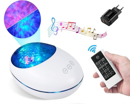 Сучасна лампазірко-хвильовий проекторідеально підійде як для вечірки, так і подарує спокійний настрійдитяча кімната. Воно має здатністьвідтворення музикипісля з'єднання зBluetoothабо через кабельДжек 3,5".Завдяки великому вибору8 режимівадаптуємо пристрій під настрій кожного користувача.
