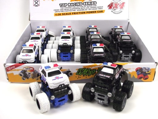Машини масивні, мають фрикційний привід - просто штовхніть і машина їде сама. В машині ресори. Він може дуже швидко їздити і долати будь-які перешкоди. Коли він натрапляє на щось велике, він може обертатися або повертатися, змінювати напрямок і продовжувати рух.