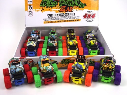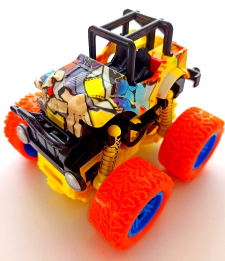 Машини масивні, мають фрикційний привід - просто штовхніть і машина їде сама. В машині ресори. Він може дуже швидко їздити і долати будь-які перешкоди. Коли він натрапляє на щось велике, він може обертатися або повертатися, змінювати напрямок і продовжувати рух.