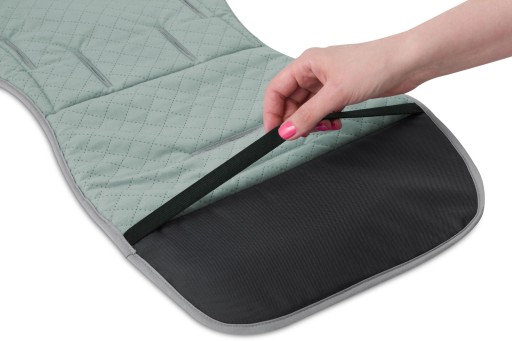 має еластичну стрічку, яка дозволяє легко прикріпити вкладиш до коляски.