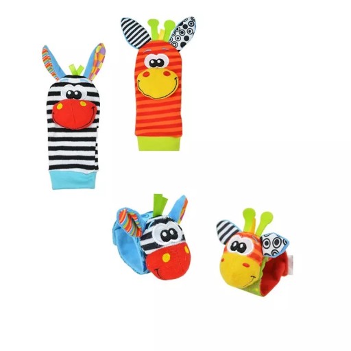 Кольори шкарпеток і ремінців стимулюють сенсорний розвиток дитинидотик, зір і слух. Вони покращують координацію рук і очей.Звук брязкалець може привернути увагу та інтерес малюка, коли їх погойдують. Таким чином, він стимулює та зміцнює слухове сприйняття, координацію рук і вух.