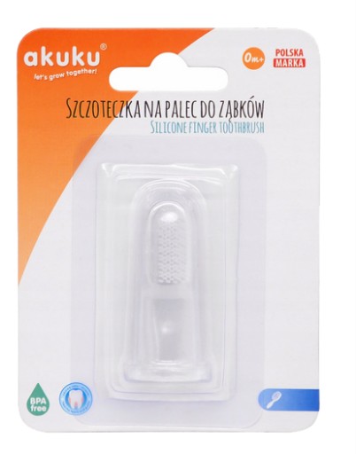 Силіконова зубна щітка для чищення перших зубів малюка і його масажу тепер повинна використовуватися з найменшими дітьми, навіть у тих, у кого ще немає зубів, щоб навчити їх підтримувати гігієну порожнини рота. Спеціальні виступи дозволяють ретельно масажувати ніжні ясна. Конструкція щітки дозволяє дістати до важкодоступних місць і видалити залишки їжі. Зубна щітка дозволяє батькам безпечно чистити чутливі ясна/зуби дитини, не боячись їх пошкодити, що може виникнути при використанні традиційних зубних щіток і відбити бажання дитини чистити зуби в майбутньому. Виготовлений з м'якого та безпечного силікону.