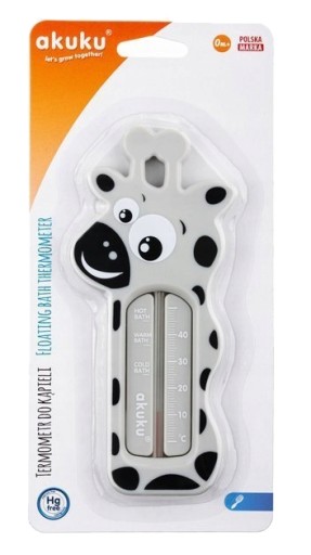 Термометр Akuku для вимірювання температури води для купання. Завдяки чіткій шкалі дозволяє точно вимірювати температуру води, а цікава форма є атракцією під час купання. Виготовлений з безпечних і міцних матеріалів. Без ртуті. Функціональний і зручний у використанні.
