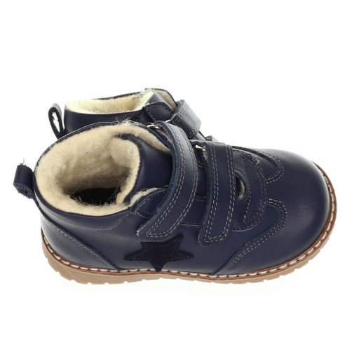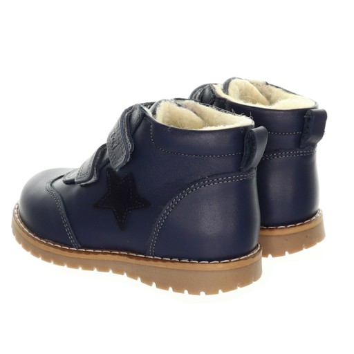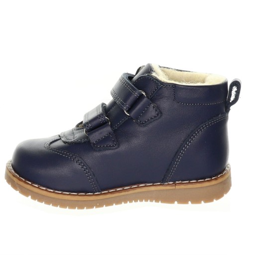 Взуття виготовлене вручну з натуральної вощеної шкіри нубук. Вбудована п'ята ідеально стабілізує стопу дитини і сприяє правильному розташуванню стопи під час ходьби. Взуття має дві застібки-липучки, що дозволяє точніше пристосувати його до стопи. Гнучке дно дозволяє підтримувати правильну біомеханіку стопи, не обмежуючи рухи стопи вздовж (підошовно-дорзальний) і торсіонно (супінація, пронація). Emel створює взуття з великою ретельністю та дбає про кожну деталь. Взуття красиве і, перш за все, зручне.Модель утеплена шерстю.