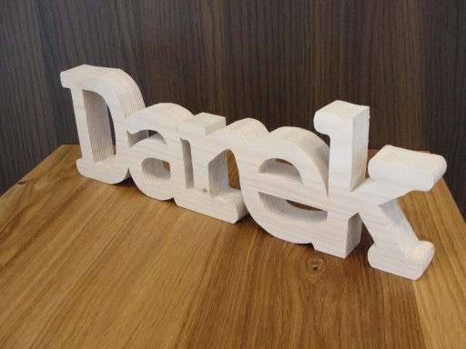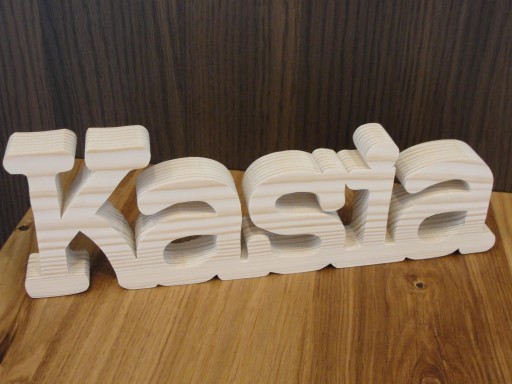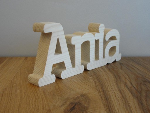 Дерев'яна табличка ручної роботи із сухих хвойних порід висотою приблизно 10 см, товщиною приблизно 27 мм. Довжина напису буде залежати від довжини імені.