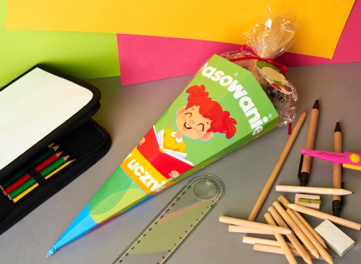 Барвистийріг достаткудля студентів.Rożek зробить вступ вашої дитини до школи приємнішим. У нього поміститься велика сумасолодощі або інші дрібні подарункищо зробить дітей щасливимиперші дні в новій школі. Це гарний жествід батьків чи вчителівдля молодих студентів, які переживають стреспочаток школи.Барвистий принтверсія дляхлопчик і дівчинка. Входить в набіркулонна якому можна писатиім'я дитини.