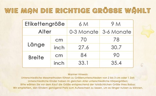 - Дитяча ковдра Dick & Warm Wicking Turmin виготовлена з високоякісної бавовни та кашеміру та може ефективно доглядати за чутливою шкірою вашої дитини. Розмір етикетки 6M підходить для новонароджених у віці 0-3 місяців. Розмір етикетки 9 м підходить для дитини 3-6 місяців.