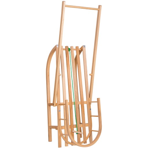 Санки виготовлені з відповідної міцності, міцності, стійкості до пошкоджень деревини бука, що гарантує безпечне, а головне, тривале використання під час прогулянок або ігор взимку. Міцні товсті ламелі підійдуть навіть дорослому пасажиру.