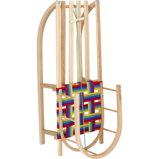 Санки виготовлені з відповідної міцності, міцності, стійкості до пошкоджень деревини бука, що гарантує безпечне, а головне, тривале використання під час прогулянок або ігор взимку. Міцні товсті ламелі підійдуть навіть дорослому пасажиру.