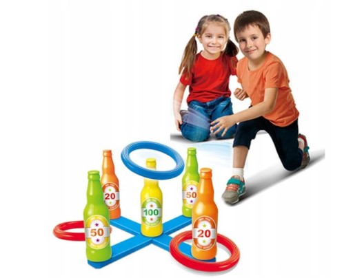 Ви повинні кинути кільце так, щоб воно пройшло через пляшку. Перемагає той, хто набере найбільшу кількість балів. Очки підраховуються за цифрами на кольорових пляшках.