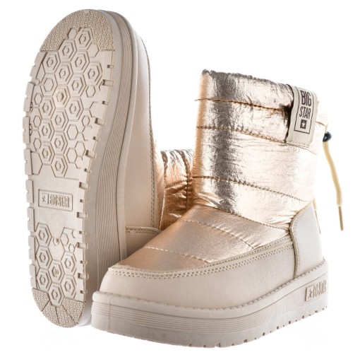 У холодні дні варто подбати про тепле взуття для наших дітей, тому бренд Big Star створив ці чудові чобітки! Вони утеплені м'яким хутром. Верх виконаний з комбінації екошкіри та матеріалу, що захищає від холоду та вітру. Ці снігові черевики мають рант у верхній частині верху. Встановлюється на делікатну платформу, яка захищає від холоду.