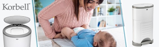 Спеціалізовані гігієнічні контейнери KORBELL забезпечують комфорт завдяки зберіганню використаних підгузків без запаху. Вони ідеально підходять для домашнього використання при догляді за дитиною.