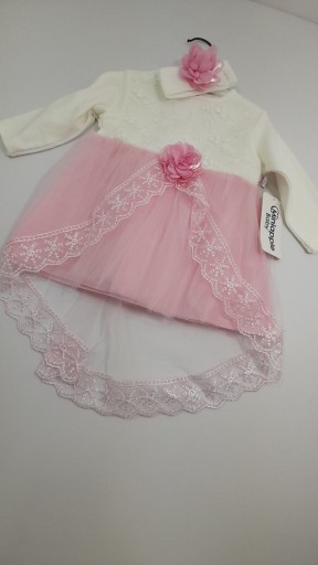 Мила елегантна сукнякостюм з довгим рукавомкремовий з додаванням рожевого.