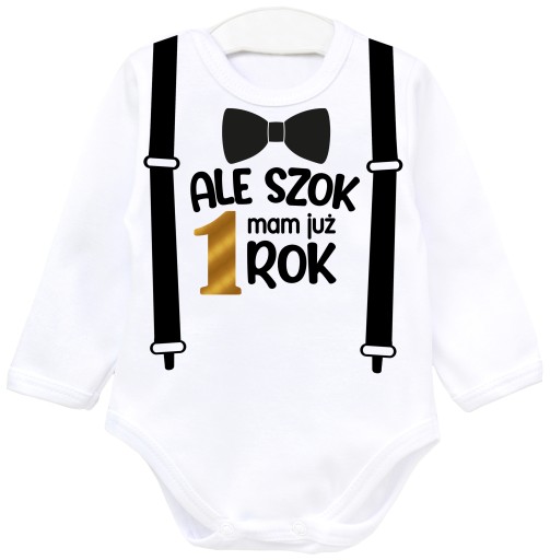 Дитячі боді з принтом на перший день народження з будь-яким ім'ям дитини на спині. Одяг soft-touch виготовлений зі 100% бавовни, що робить його стійким до пошкоджень і дружнім до чутливої шкіри дитини. Практична застібка-застібка полегшує переодягання малюка, а довгий рукав дозволяє підтримувати потрібну температуру тіла дитини. Друк на флексовій та флоковій фользі є найдовговічнішою та найкраще перевіреною технологією друку.