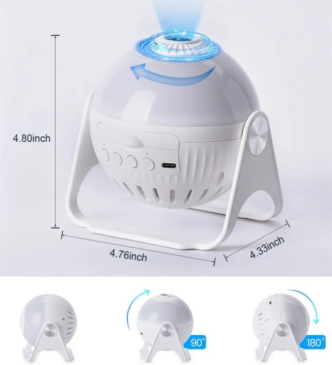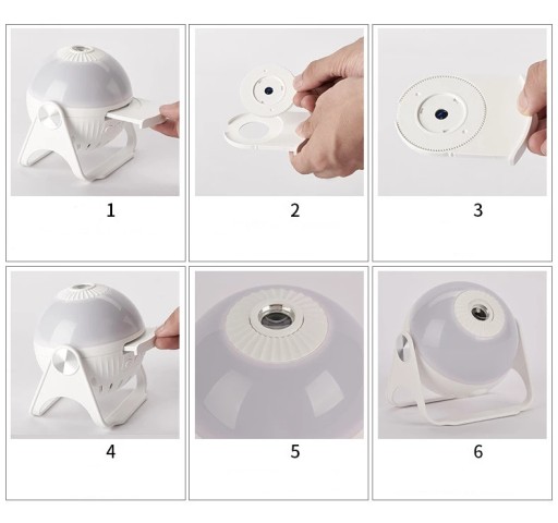 Чудовий подарунок для дітей: виготовлений з високоякісного ABS матеріалу. Принцип зображення плівки, не шкодить очам дітей. Корпус, що обертається на 360 градусів, може проектувати сцену на стелю, стіни та підлогу. Стимулювати дитячу допитливість і уяву - цікавий розвиваючий подарунок для дітей. Також підходить для прикраси будинку/домашнього кінотеатру/різдвяних прикрас/прикраси кімнати.