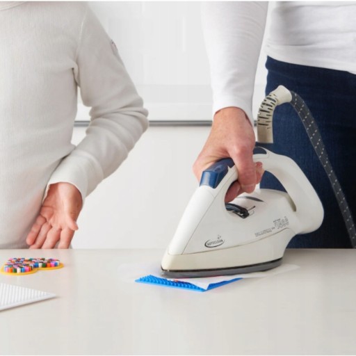 Коли візерунок буде готовий, накрийте намистини папером, що входить в комплект, і пропрасуйте їх теплою/гарячою праскою протягом декількох секунд, щоб намистини злилися. Після прасування залиште візерунок з бісеру вийти. Покладіть його на рівну поверхню і не згинайте. І все, ми можемо насолоджуватися нашою новою іграшкою!
