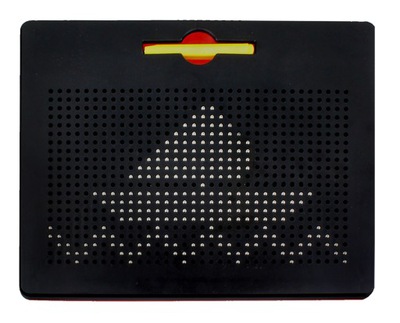 Коли ви рухаєте намагніченим кінчиком ручки по отворах на дошці, кульки осідають, створюючи малюнок.