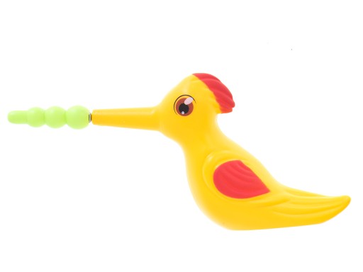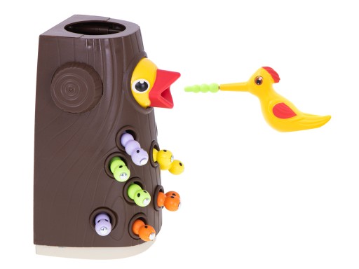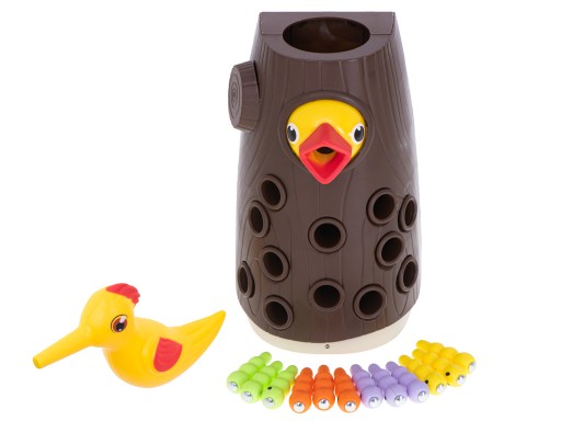 Ця магнітна гра полягає в тому, щоб ловити хробаків з магнітними головами за допомогою птаха, чий довгий дзьоб закріплений магнітом!