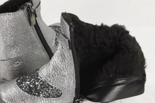 Дитячі чобітки KORNECKI з екологічної шкіри, застібаються на блискавку. Чоботи повністю утеплені. Загальна висота взуття близько 11 см, ширина верху близько 10 см.