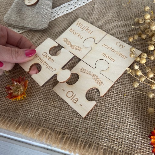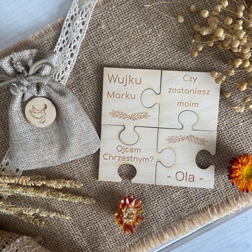 Елегантнийдерев'яний пазл із проханням бути хрещеним батьком.