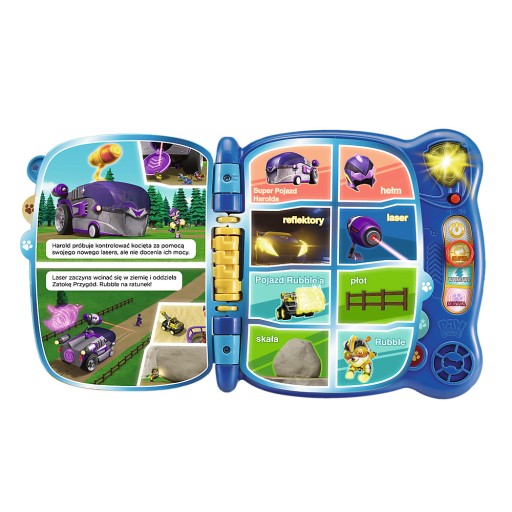 Книга складається з 10 інтерактивних сторінок і містить 4 варіанти розваг: вимова, пошук слів, космічна вікторина та звуки. Завдяки іграшці діти збагачують свій словниковий запас і стимулюють музичну творчість.