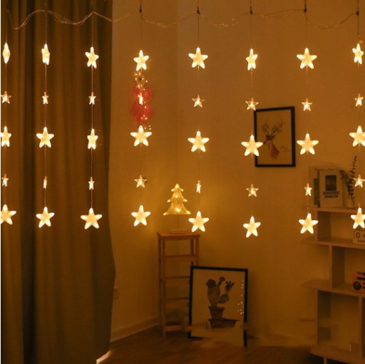 Мода останніх років показує, що якщо світло легкої штори поєднати з вуаллю, то він буде красиво розсіюватися. Зірки також створять неповторну атмосферу, якщо їх світло стане дзеркальним відображенням у склі. Фантастичний ефект також можна отримати, розмістивши їх як прикрасу стіни, виставивши об’єкти або певне місце.