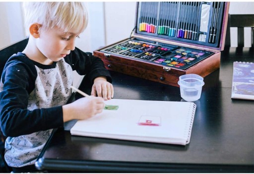 Наш художній набір містить щось для кожного: ручки для розфарбовування, олівці для малювання та фарби для малювання. Все це в насичених кольорах, які чудово виглядають на папері. Все поміщено в зручну валізу, яку можна легко скласти, закрити і взяти з собою в школу, садок, на уроки мистецтва чи подорож малювати на природі!
