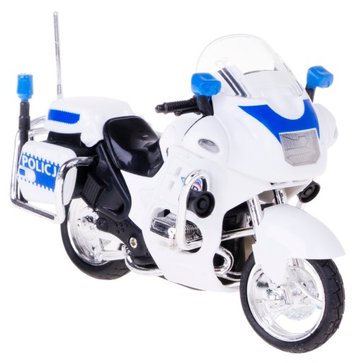 Поліцейський мотоцикл у масштабі 1:18 із пластику та металу з гумовими шинами.