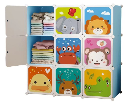 Модульна дитяча шафа казкової тематики - чудове доповнення будь-якої дитячої кімнати або спальні. Воно складаєтьсяз 9 модулів, кожен з яких має дверцята з казковим принтом.