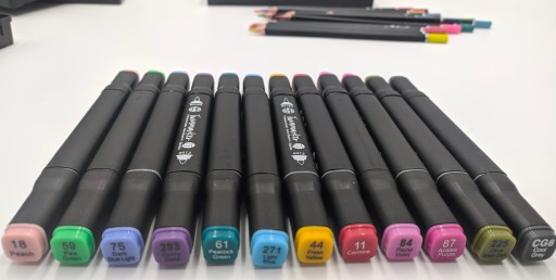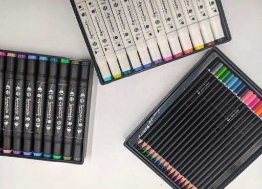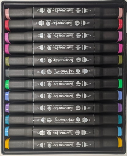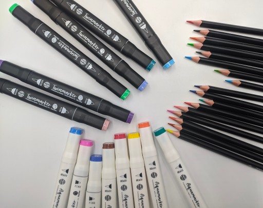Містить професійні маркери Twinmarker, класичні спиртові та водяні фломастери та кольорові олівці