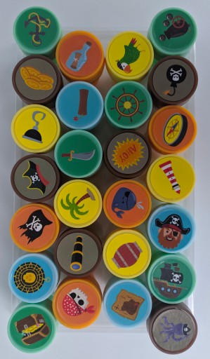 Штампи, просочені кольоровим чорнилом, готові до використання