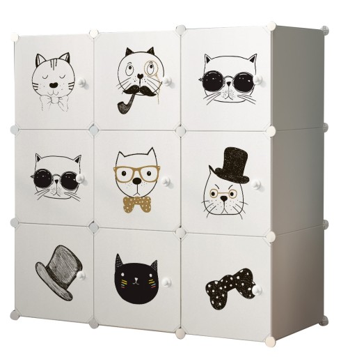 Модульна дитяча шафа казкової тематики - чудове доповнення будь-якої дитячої кімнати або спальні. Воно складаєтьсяз 9 модулів, кожен з яких має дверцята з казковим принтом.