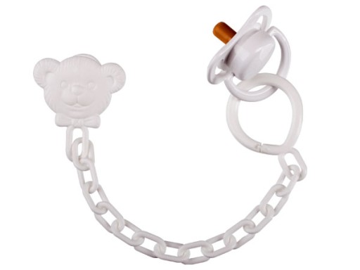- Біла пустушка з ланцюжком і кліпсою