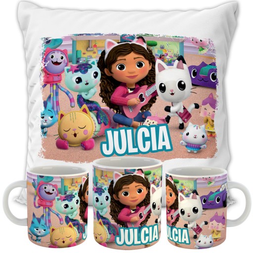 КОМПЛЕКТ ПОДУШКА + ГРУЖКА КОТИЧИЙ БУДИНОК ГАБІ + ВАШЕ ІМ'Я!