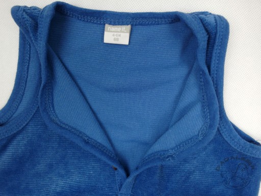 Велюрові штани NAME IT з синього матеріалу з вельветовими смугами. Застібка на гудзики на шиї, застібки на промежині.